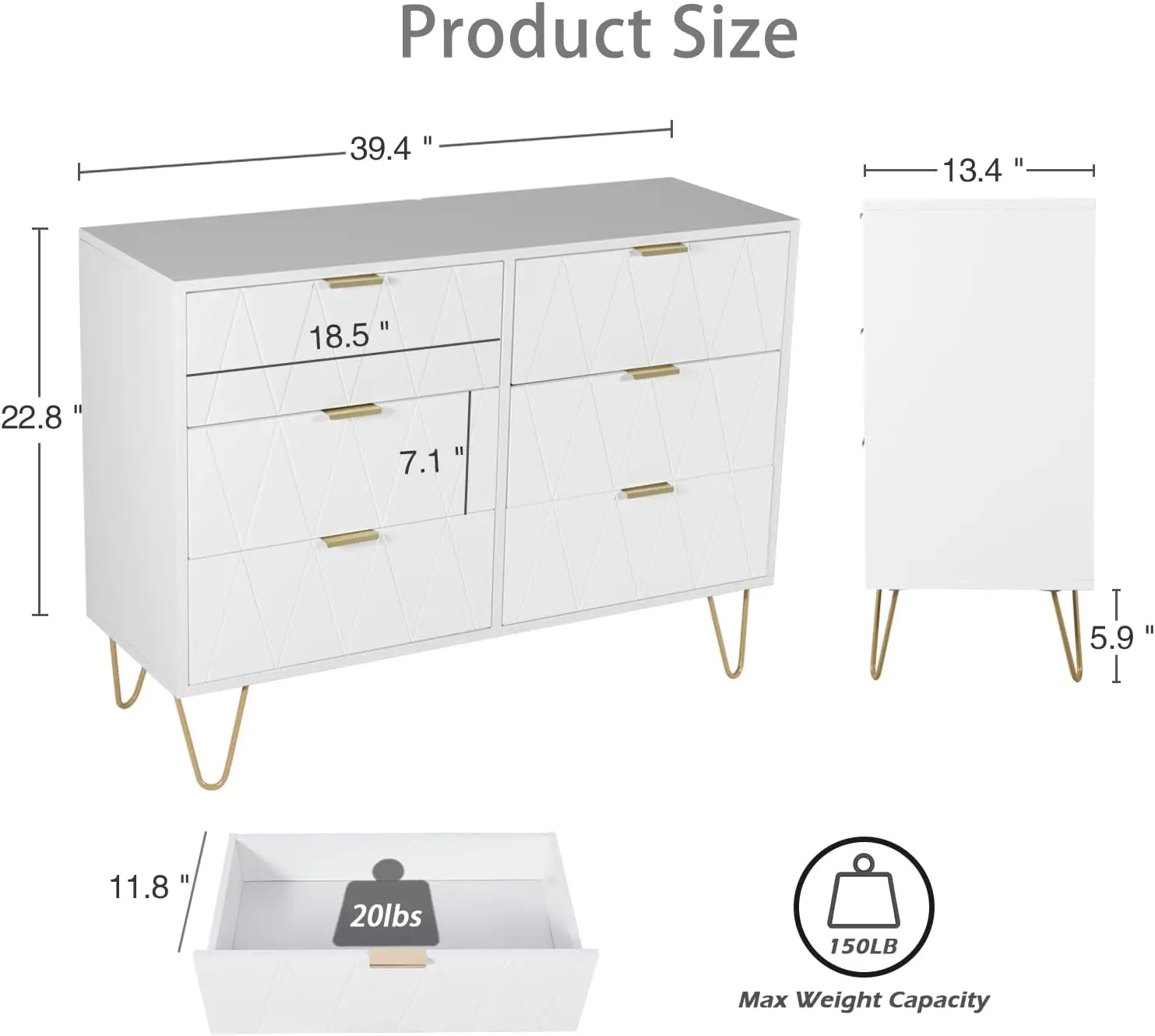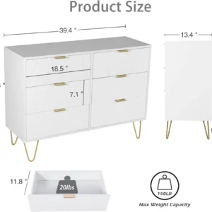 - Dimension of the dresser: 13.4”W x 39.4”L x 22.8”H, Dimension of the nightstand: 15.7″D x 11.8″W x 20.5″H; Per drawer weight capacity up to 20lbs.