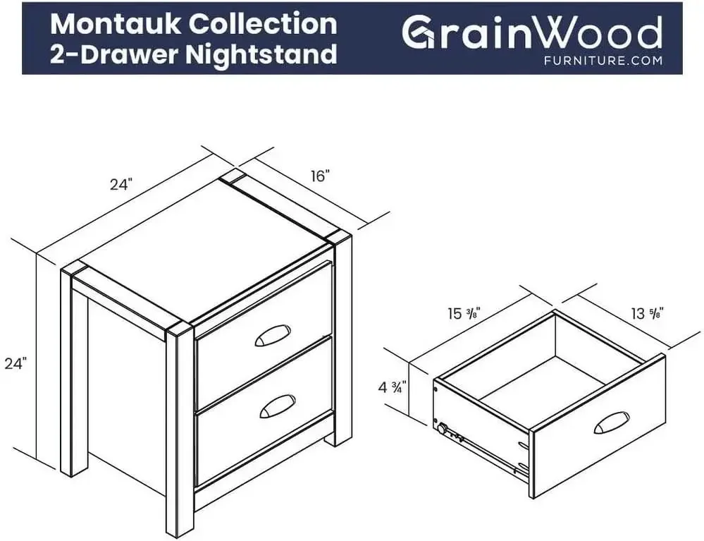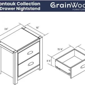 Montauk 2-Drawer Bedside Nightstand, Solid Wood with Rustic Walnut Finish