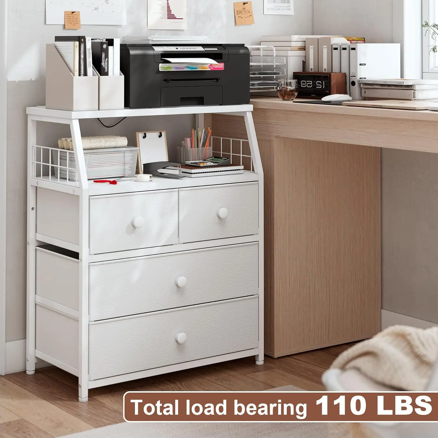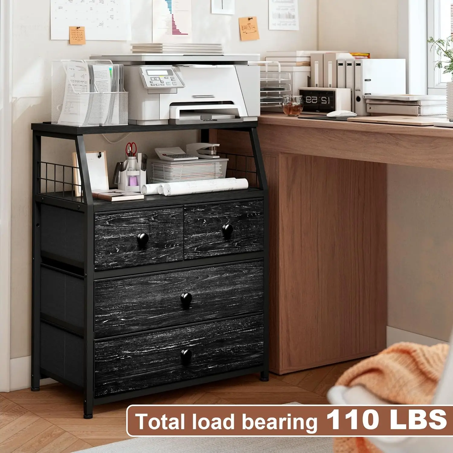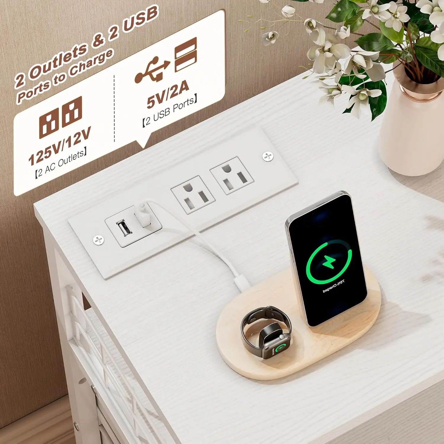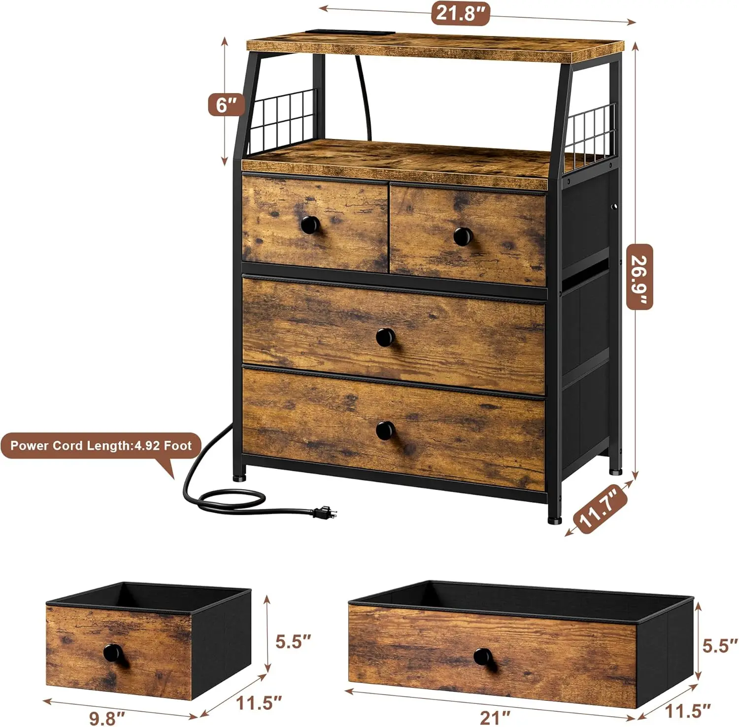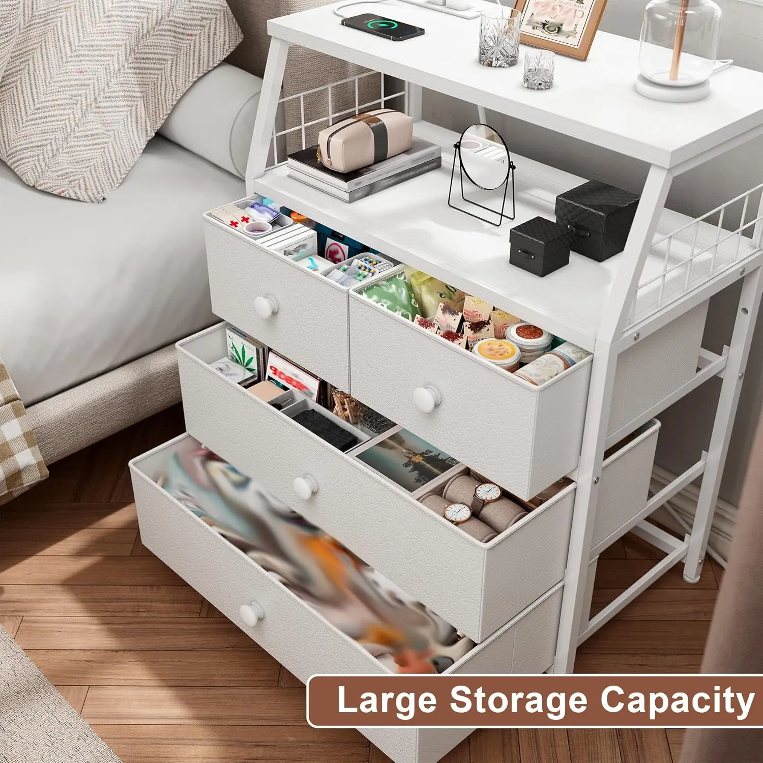 Nightstand Set of 2, Night Stand with Charging Station & LED Lights, Bedside Table with 4 Fabric Drawers for Bedroom