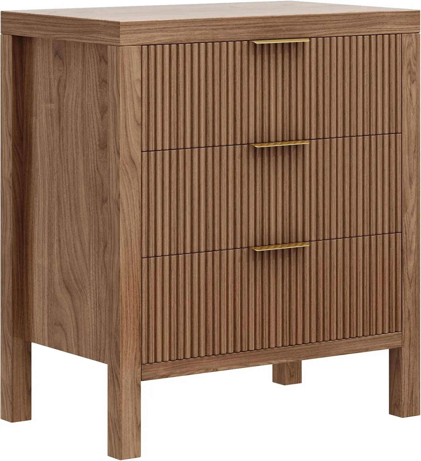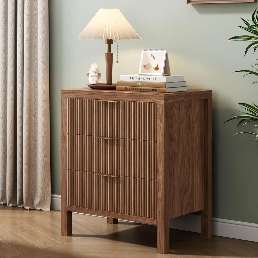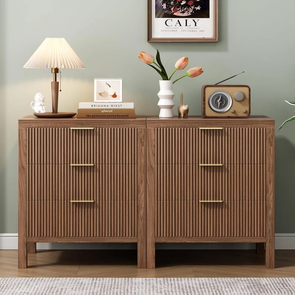 - Timeless Elegance Meets Modern Chic: The distinctive waveform fluted panel enhances the texture and spatial presence of this exceptional piece, making this side table suit many home decor, luxurious gold metal pull handles add appealing detail to this modern dresser.